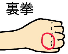 | 打ち技 | 裏拳(人差指と中指の基部を主とする拳の甲)![]() |